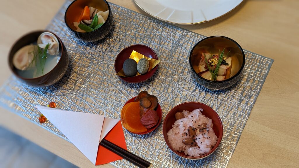 お食い初め Posted on 2023-05-222023-08-05 by オーナー 娘が生後100日になったタイミングでお食い初めをしました。 お赤飯以外は手作りで準備しました。 準備にかかった時間は買い出し含めて4時間ぐらいかな?と思います。
